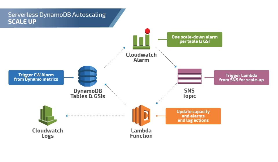 So with that in mind, here is the basic layout of a serverless DynamoDB Auto Scaling solution: