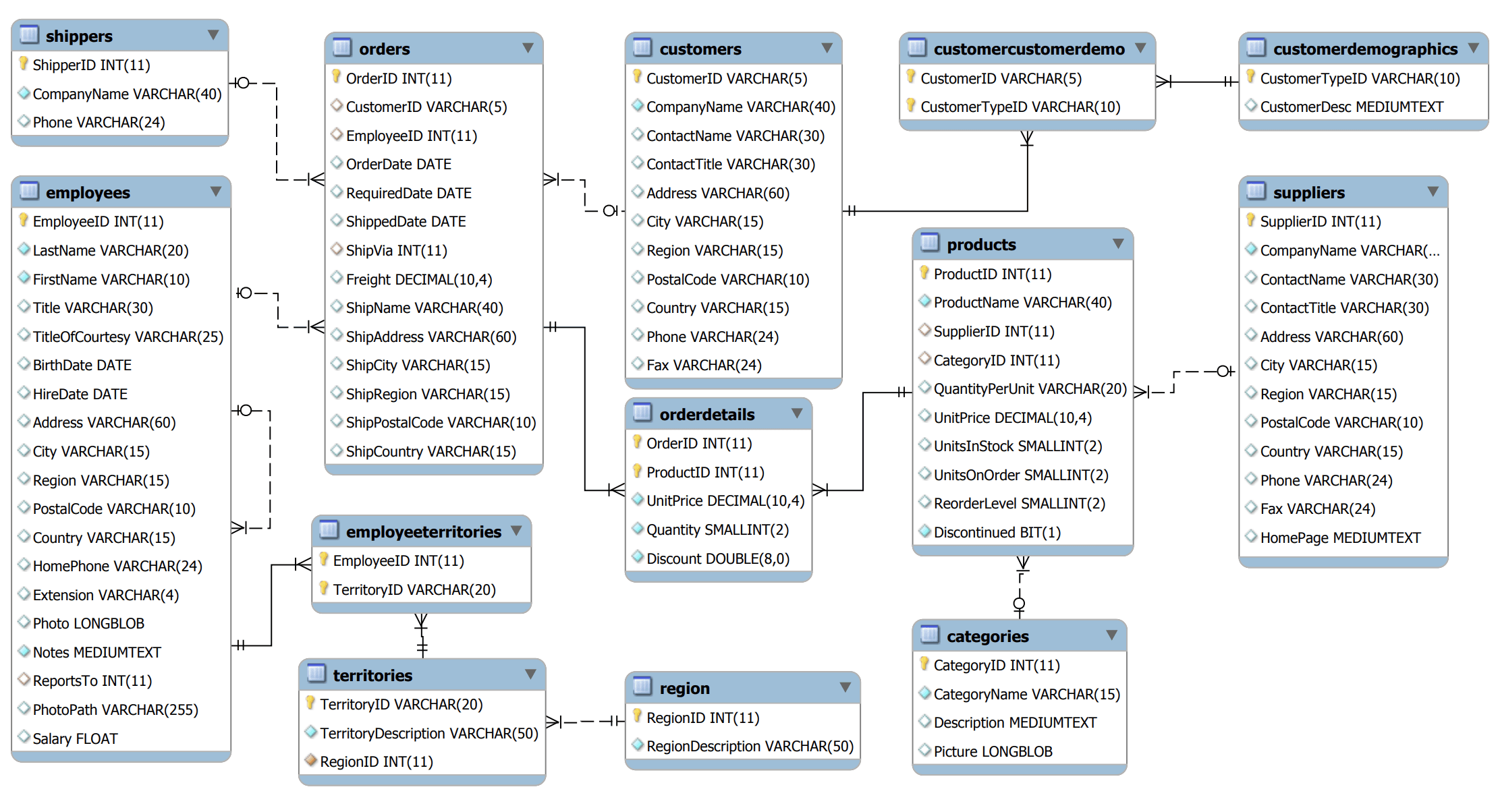 So what relational database should we, er, Dynamize? I decided to go with the most SQL-y example I could think of: Northwind, the classic relational database used to teach the Microsoft Access product back in the ’90s.
