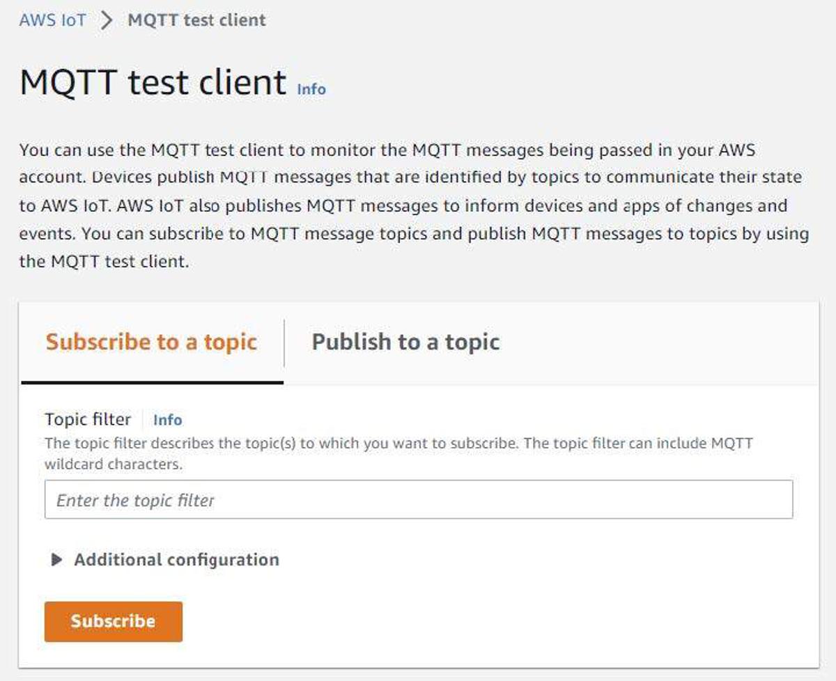 With this understanding, we’ll start this journey by learning how to write to an IoT topic using the AWS web console.