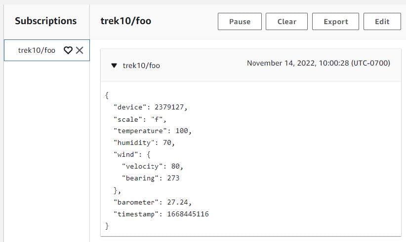 And with that, you just successfully published to a topic and viewed the received payload using the AWS web console.