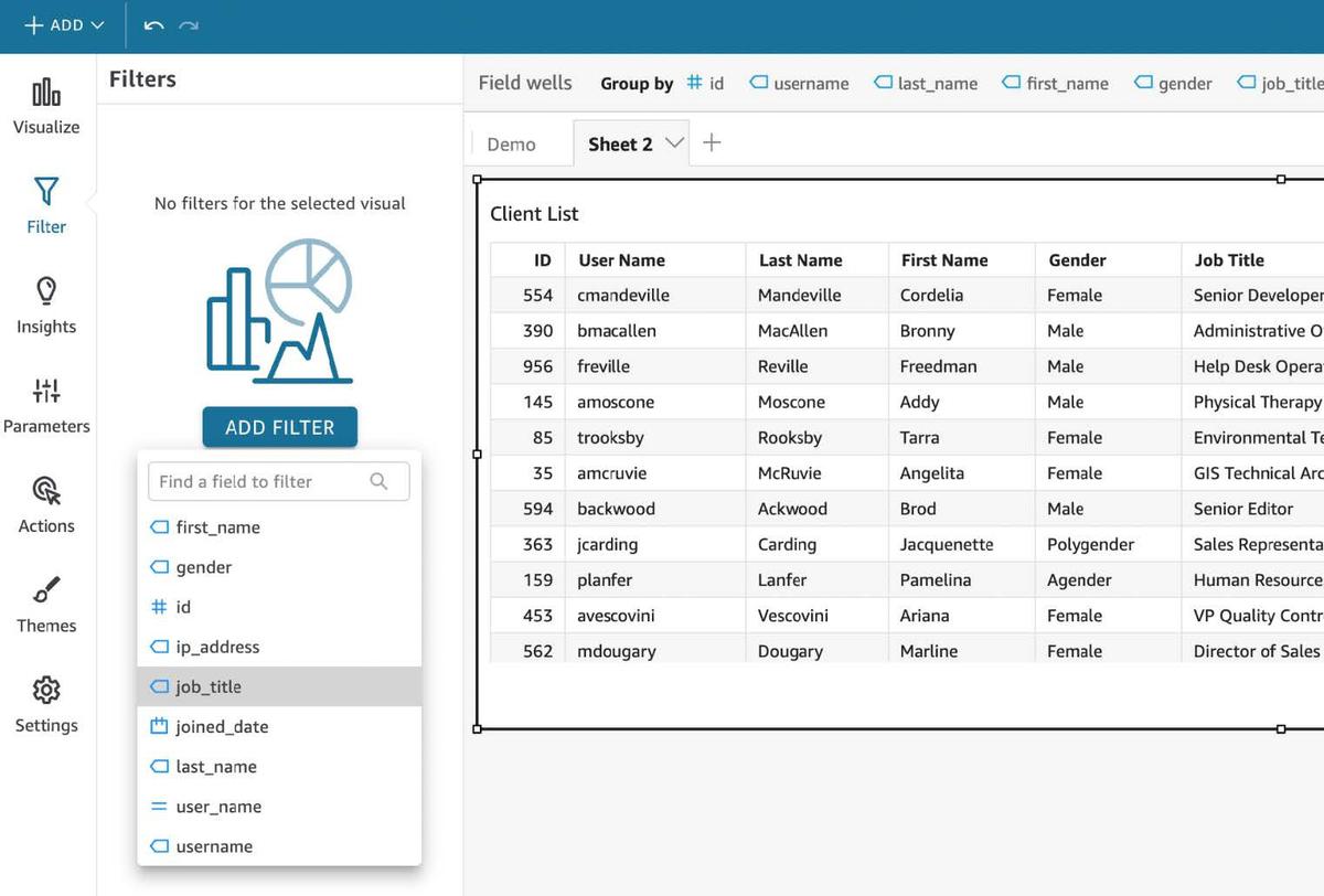 Filtering is an essential component of any exceptional dashboard and plays a very important role in creating visualizations that illustrate your data insights in a compelling way. In QuickSight, filters will serve your visualizations in the most basic way by reducing the volume of the data displayed to a specific condition you set. Most importantly, filters and similar tools will allow your users to choose for themselves how they want to interact with the visualizations that you present them. Mastering this tool will not only empower your user to discover more insights that your dashboard has to offer but allow users to conduct their own analysis through your visuals.