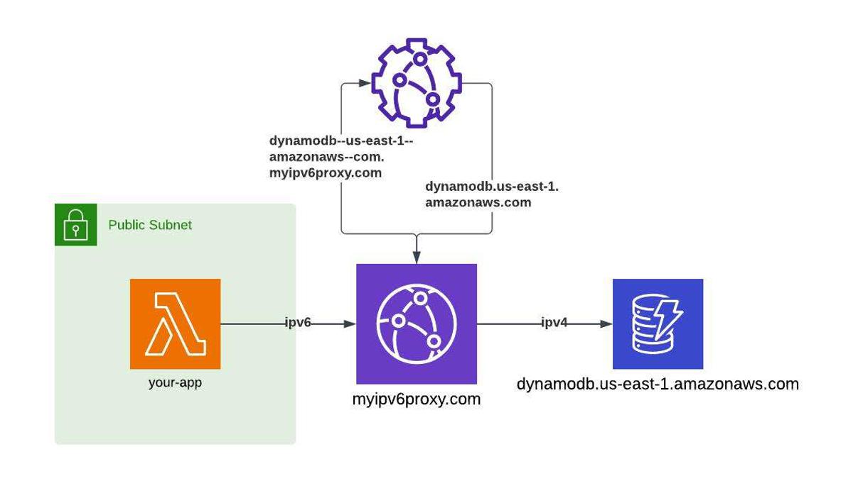 It can be pretty frustrating if you're trying to adopt IPv6 in your workloads but the AWS service you need to call doesn't have an IPv6-enabled endpoint. Luckily, there's a way to work around this limitation for most services.