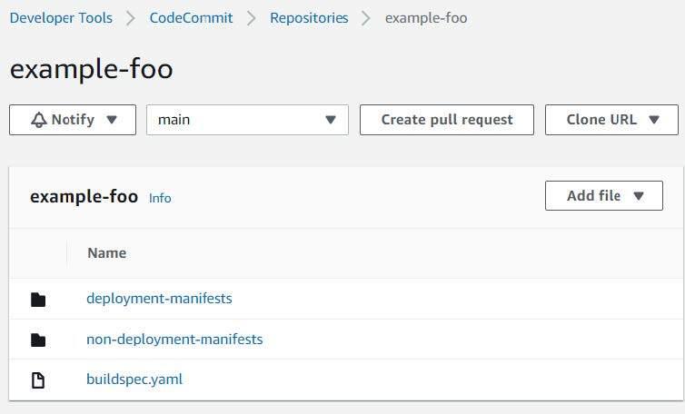 This is accomplished via the following “kubectl” invocations. The directories we are pointing the kubectl command at are found in the “codecommit-repo” directory from the git repository associated with this blog post.
