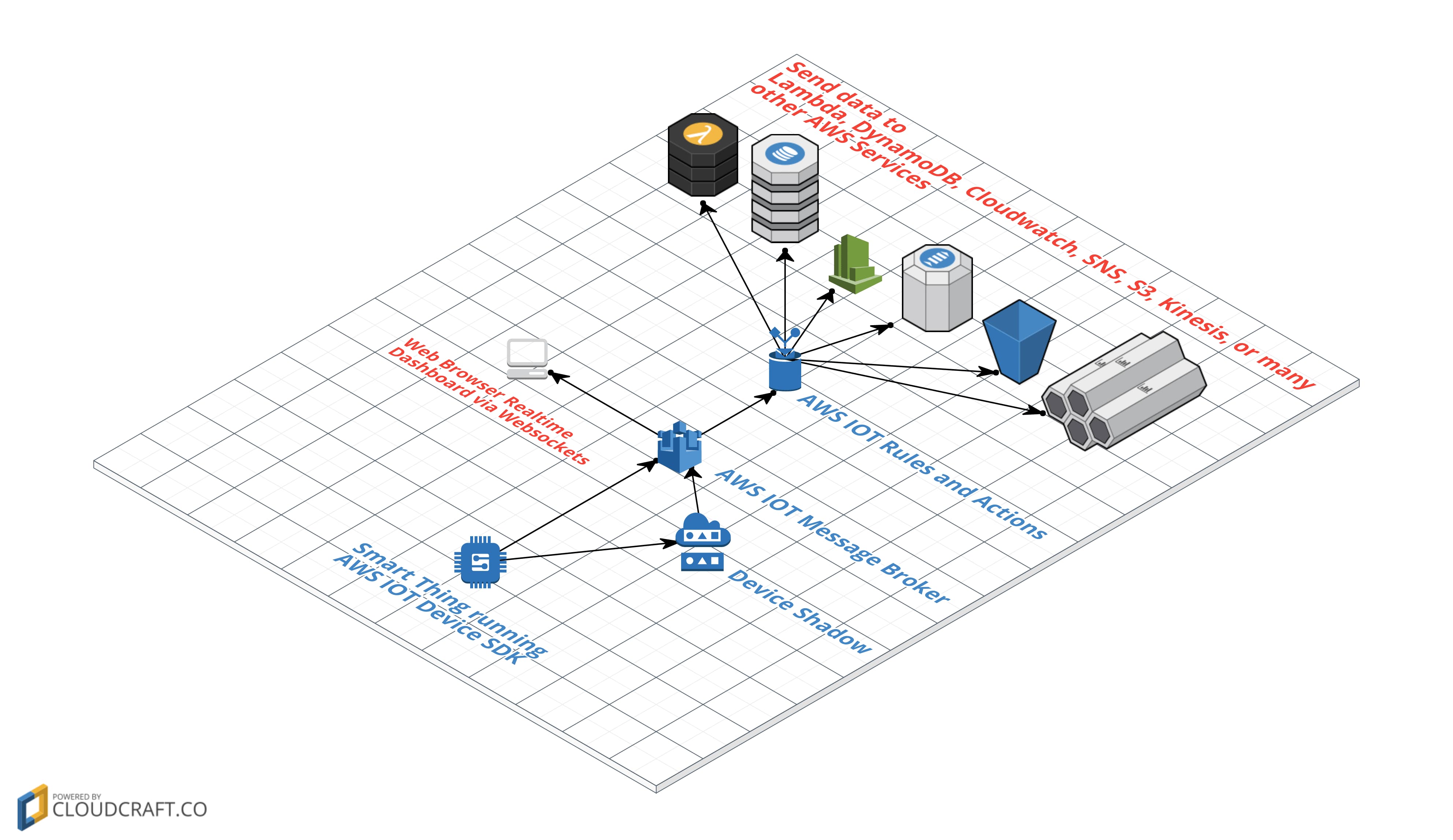 Another interesting option: a browser real-time dashboard can also subscribe to updates with MQTT-over-websockets, another protocol supported by AWS IoT. The result here is remarkably low latency… data sent from the thing shows up in the browser fast enough that the perception is completely “immediate”. This SDK for Javascript provides a starting point.