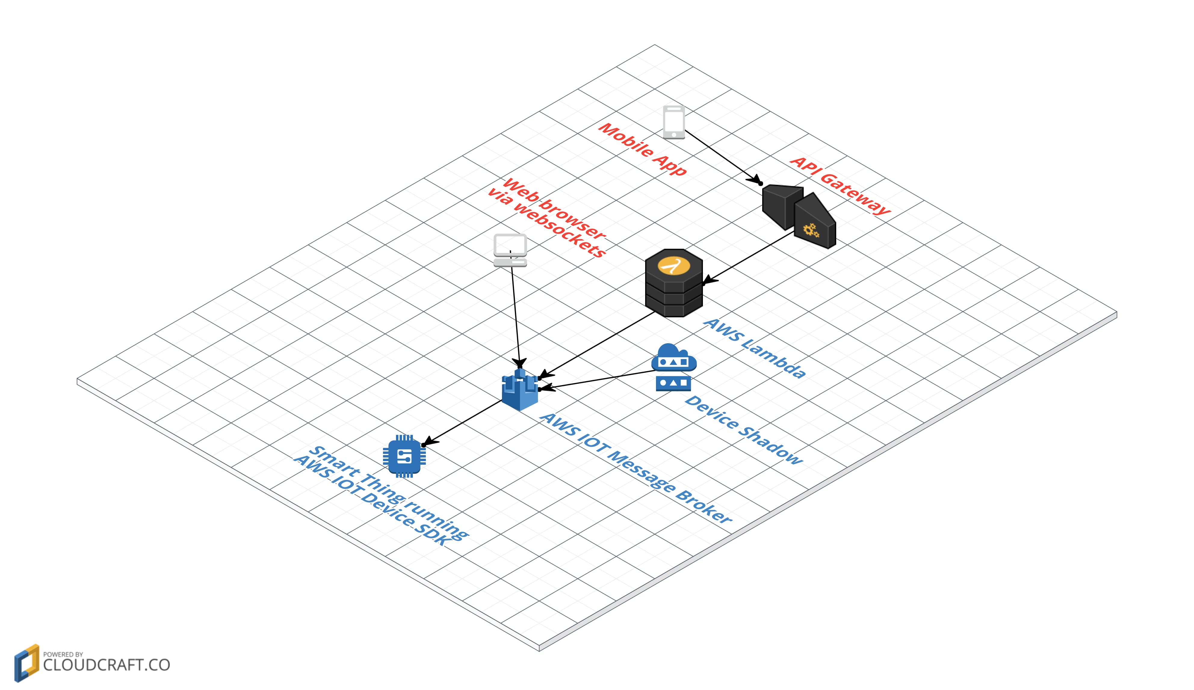 Sending data to your thing (typically commands like changing a setting) is simpler. With the AWS IoT Device SDK, your thing can easily subscribe to MQTT updates of the thing shadow and other MQTT topics and take some on-device action when receiving those updates, for example turn on your smart light bulb when you receive an update to the shadow with the attribute “state”: “on”. So on the back end, all you need is a something to write the message.