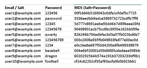What is a Salt? As we discussed in Part 1, LinkedIn’s password storage design was found to be very insecure after its breach. In addition to not using the obsolete MD5 hash, there is one simple way LinkedIn could have significantly improved the security of its password databases — it’s called salting. A salt is data that are generated and added as additional input to a cryptographic hash function. The purpose of a salt is NOT to keep it hidden from the attacker but to alter the hash function input making rainbow tables useless. For example, LastPass leverages the user’s email address as a salt (more on this later). Instead of hashing “123456” and storing this value in the database, the system will hash “user1@example.com123456” resulting in a completely different hash: